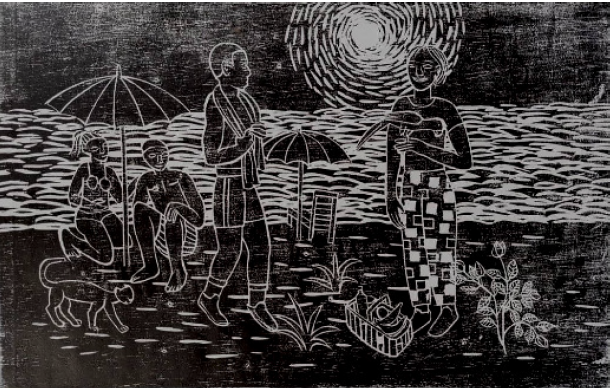 La Plage, 2016, Woodblock print (Xylography), 65 cm x 50 cm