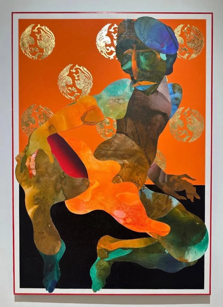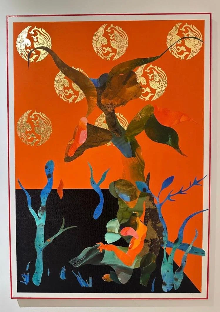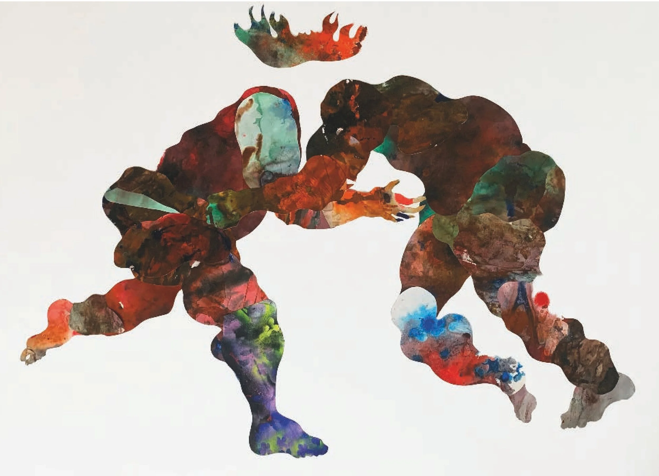Les Combattants, 2022, Wood panel, Material: Sumi, japanese pigment on washi, (japanese paper), Technique: Collage and painting, 137 cm x 187 cm