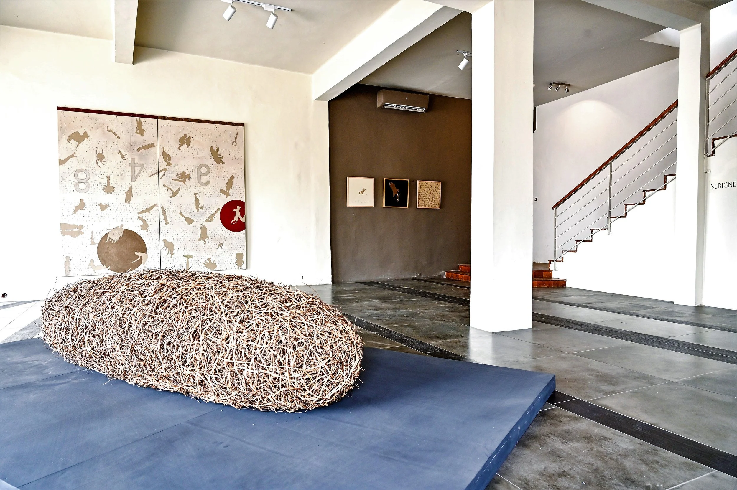 Parmi eux, Bili Bidjocka, originaire du Cameroun, invite à une réflexion sur le sens et la finalité de la création à travers des œuvres en forme de puzzle et des syllabaires énigmatiques. Son travail explore la notion de chute et la complexité des mots et des images, en nous incitant à revisiter nos certitudes.